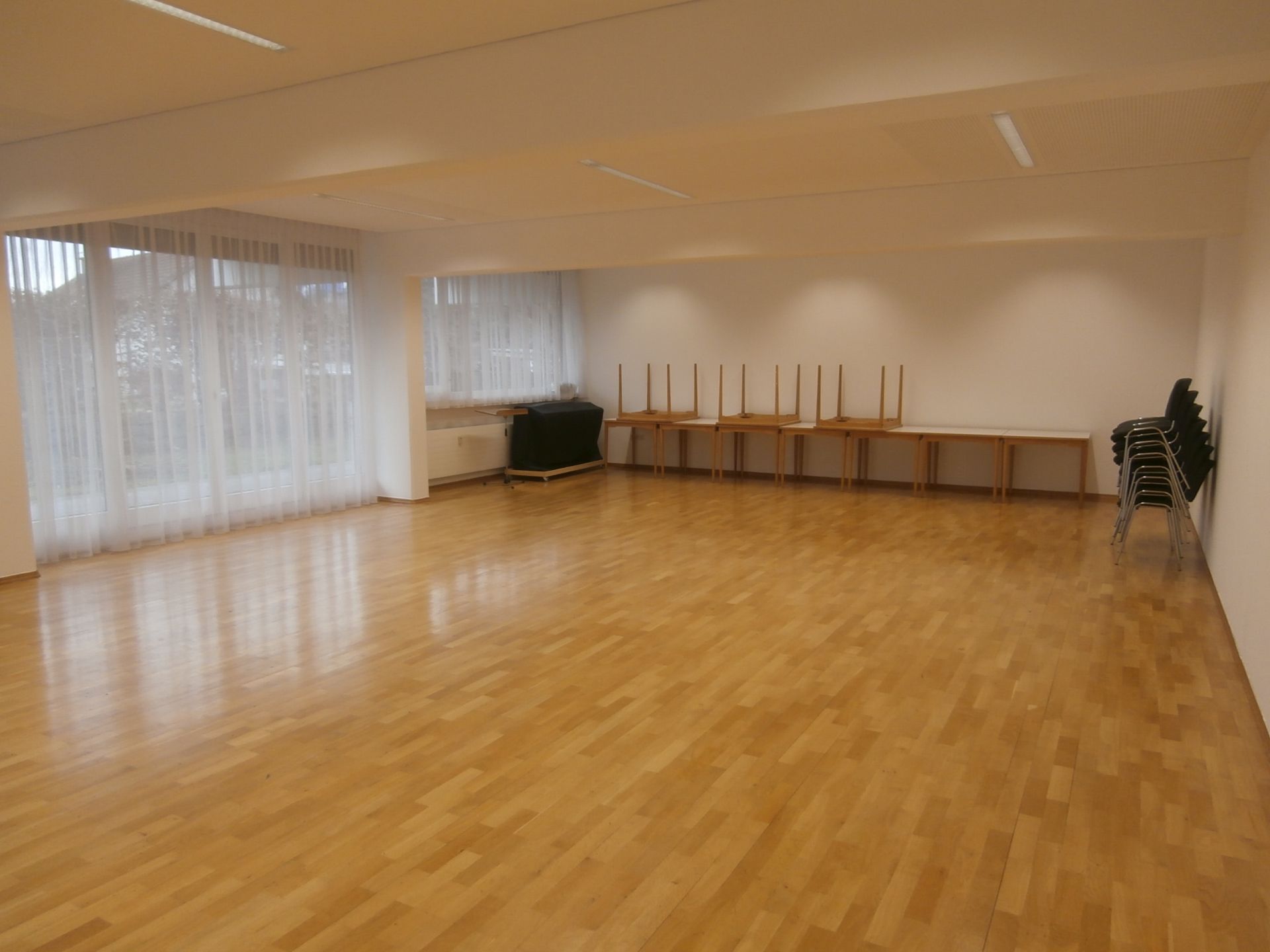 Dieser kleine Saal bietet 75 m2 Platz und fasst max. 50 Personen.