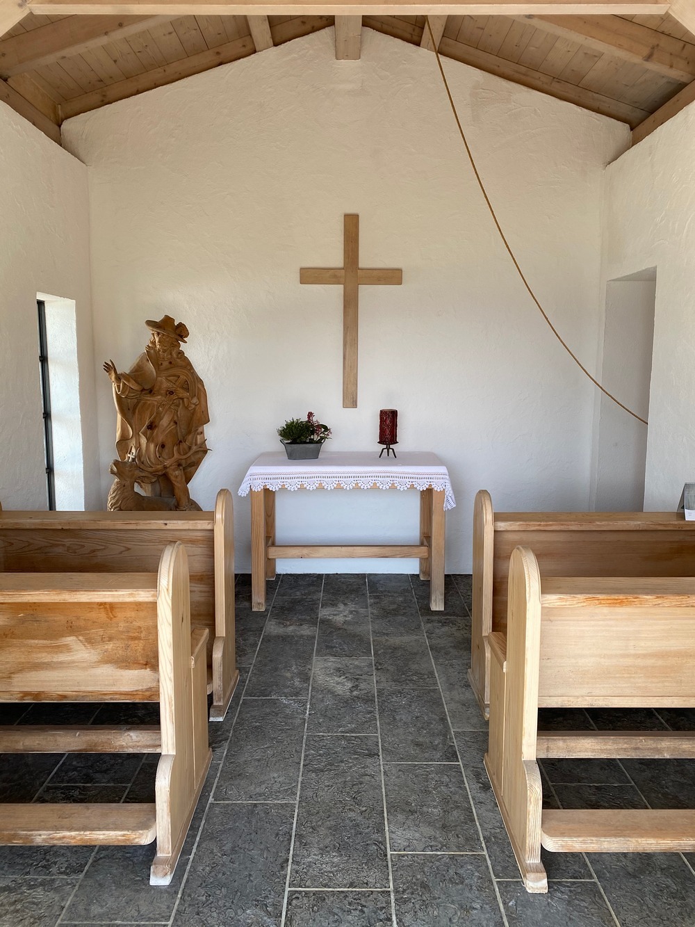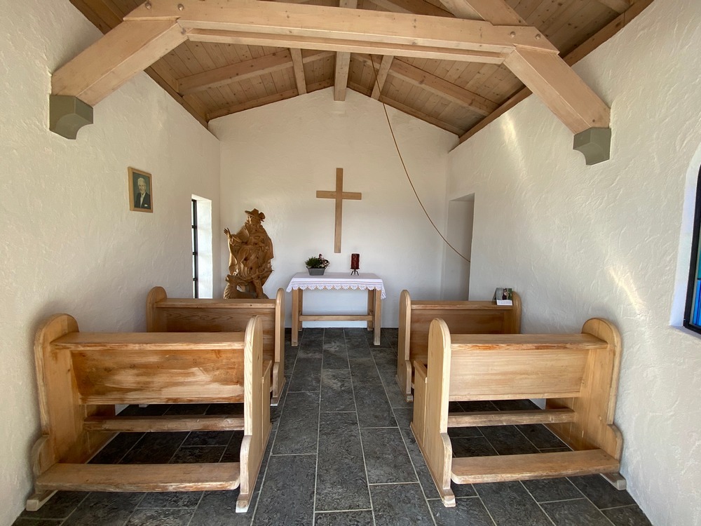 Mit dem Kapellenbau an diesem Ort, erfüllte sich Walter Rhomberg zum Lebensende einen Herzenswunsch. Katharina Bechter stellte den Grund zur Verfügung. Architekt Much Untertrifaller aus Bregenz hat diese Stätte des Gebetes mit viel Gefühl gestaltet und in die Landschaft gesetzt.