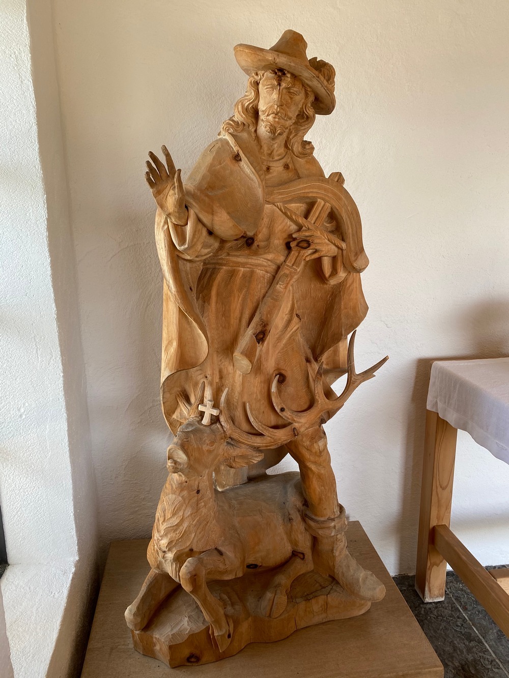 Der hl. Hubertus ist der Schutzpatron der Jäger, Förster und Waldarbeiter. Die Legende erzählt, Hubertus soll auf der Pirsch im Geweih eines Hirsches ein leuchtendes Kreuz erschienen sein. Dabei soll ihn eine Stimme ermahnt haben, sein ausschweifendes Leben zu ändern. Daraufhin wurde er Einsiedler, Missionar, Priester und im Jahre705 Bischof von Maastricht.