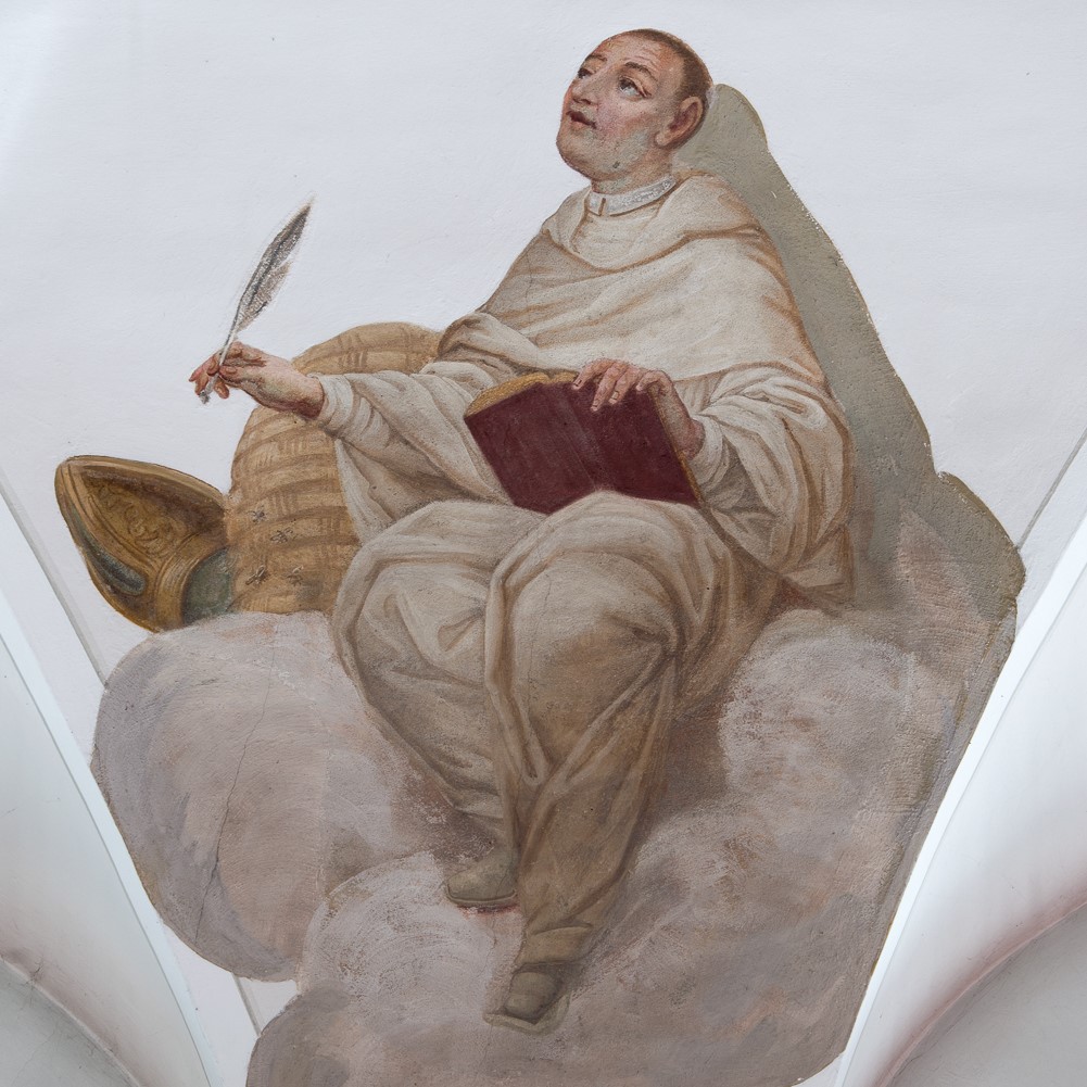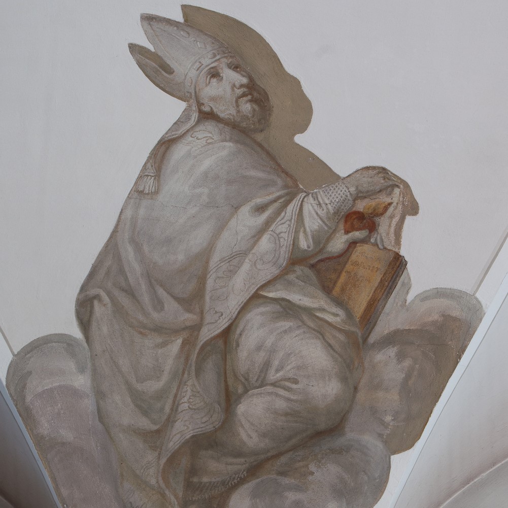 Zwischen den Stichkappen zu den Fenstern sind die vier großen westlichen Kirchenväter und zwei bedeutende Kirchenlehrer gemalt, wobei auch Katharina von Siena im Altarbild zu den Kirchenlehrern zählt.