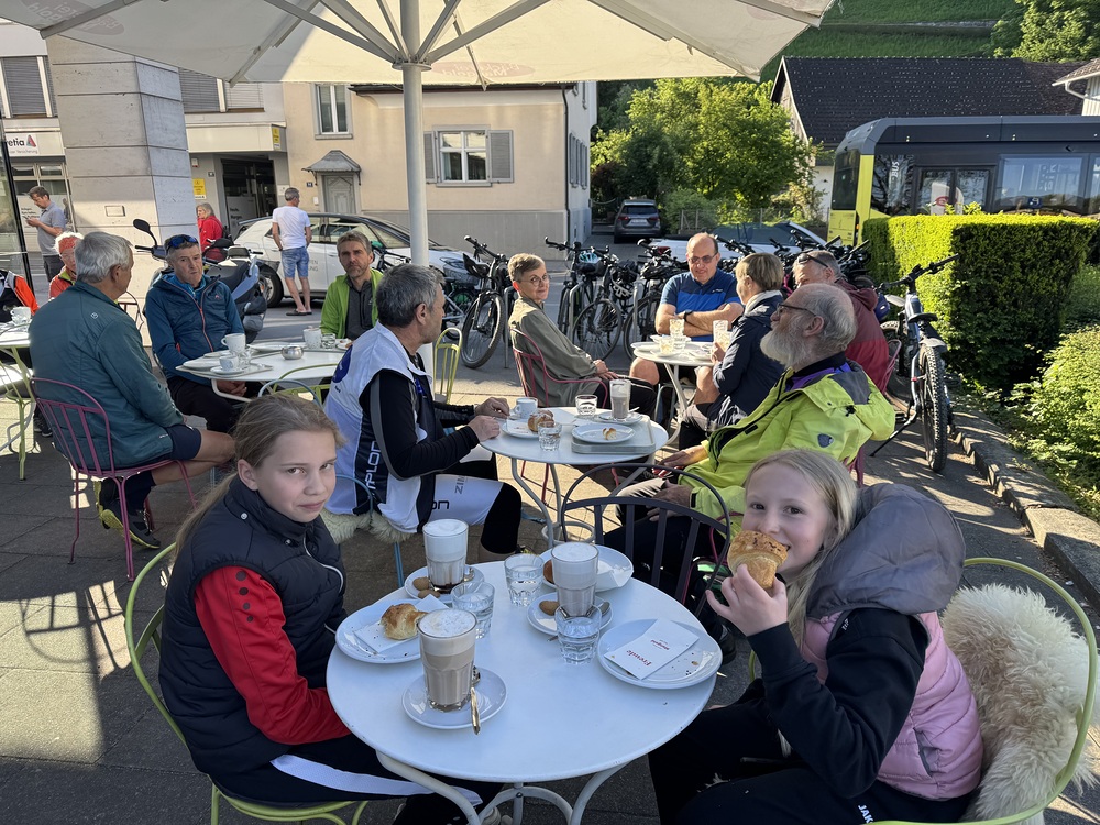 Beim gemütlichen Mittagessen stärkten wir uns für die Rückfahrt. Ein kurzer Stopp für ein wohlverdientes Eis rundete die Rücktour ab. Nach 96 gefahrenen Kilometern kamen wir alle wohlbehalten und zufrieden wieder in Lingenau an, wo wir den Tag gemeinsam im Gasthaus ausklingen ließen.