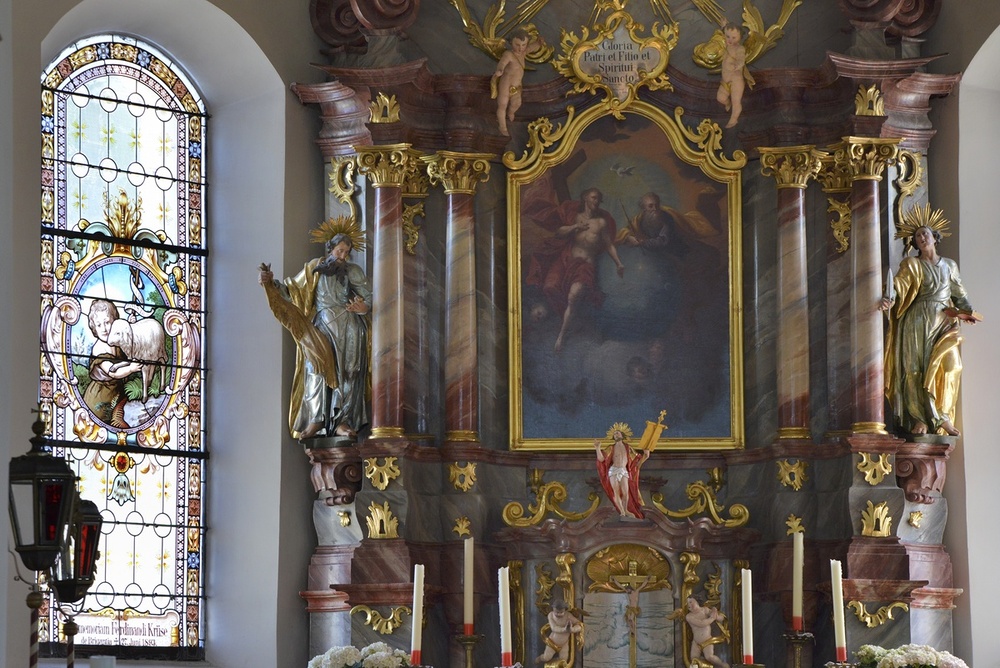 Chor: li. hl. Johannes der Täufer, re. Jesus mit Kelch und Dornenkrone