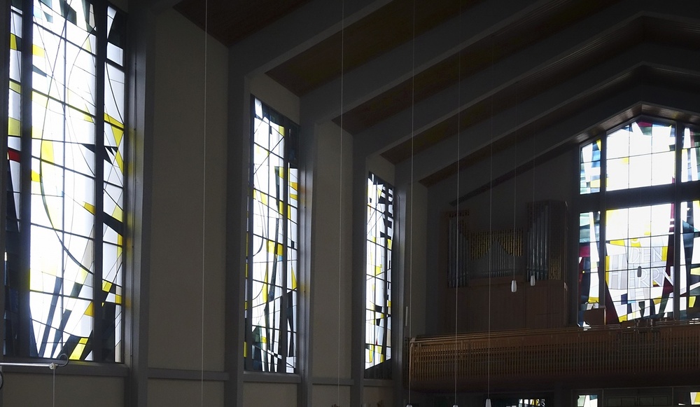 Glasmalereien abstrakte Kompositionen, bez.. Tiroler Glasmalereianstalt Innsbruck 1960