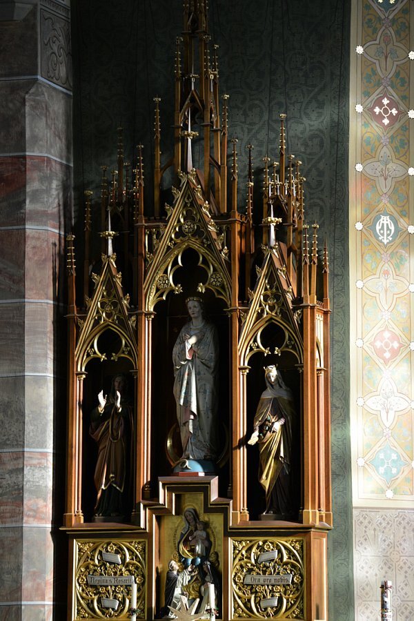 Friedrich Schmidt entwarf auch die Seitenaltäre, 1880-82 von Kob geschnitzt. Links - auf der "Männerseite" der Josefsaltar mit den hll. Isidor und Sebastian.