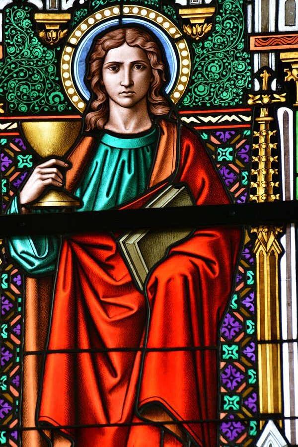 Weiler, Pfarrkirche zum Heiligsten Herzen Jesu, hl. Johannes Evangelist, 'Tiroler Glasmalerei