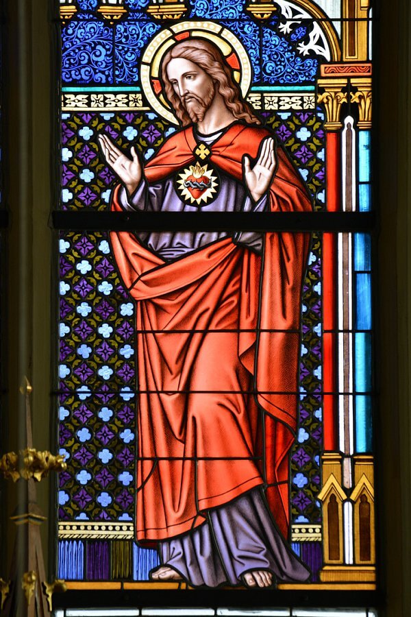 Weiler, Pfarrkirche zum Heiligsten Herzen Jesu, Herz Jesu, Tiroler Glasmalerei