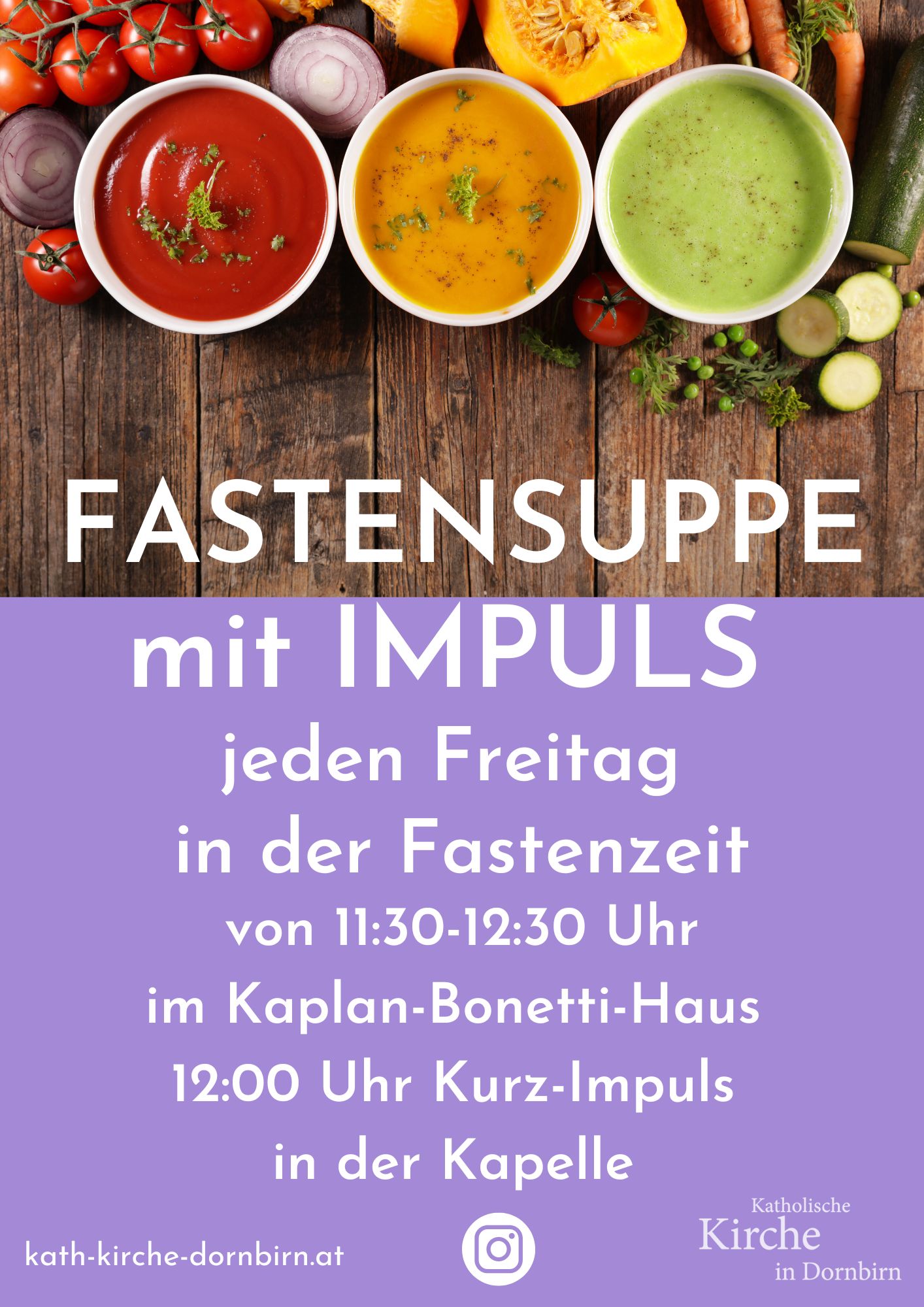 Jeden Freitag in der Fastenzeit von 11:30 bis 12:30 Uhr im Speisesaal des Kaplan-Bonetti-Hauses. Um 12:00 Uhr gibt es einen Kurzimpuls in der Christuskapelle.